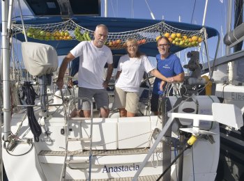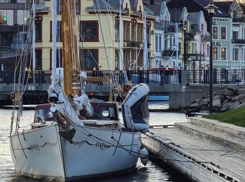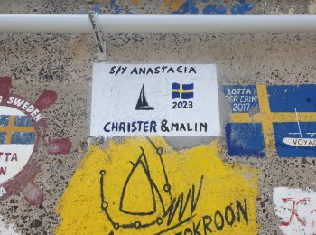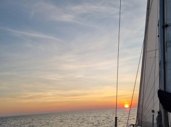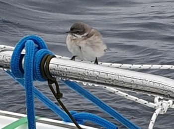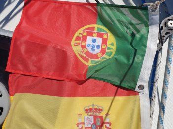 The 24-hour sailing from Île de Ré was tougher, rainier and bumpier than planned and what the weather forecast had promised. We certainly got our fair share of Biscay's infamous waves! It was difficult to get any sleep between the watch shifts, but otherwise the crew was in good spirits and mightily impressed with how well the self-steering windvane worked. Now we could set it for a specific win ...